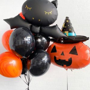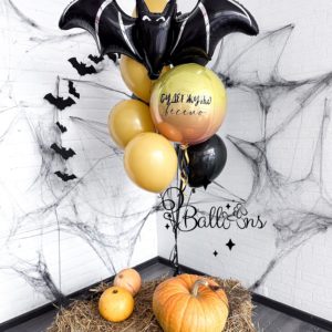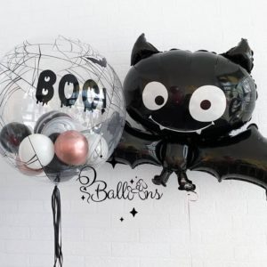 Halloween Balloon Bouquet With Personalised Balloon and Cute Bat