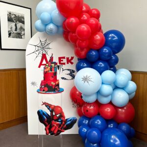 Spiderman Themed Birthday Balloon Arch with Custom Backdrop