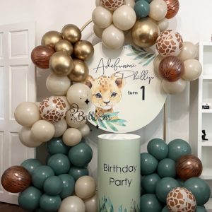 Safari Jungle Birthday Balloon Arch with Custom Backdrop