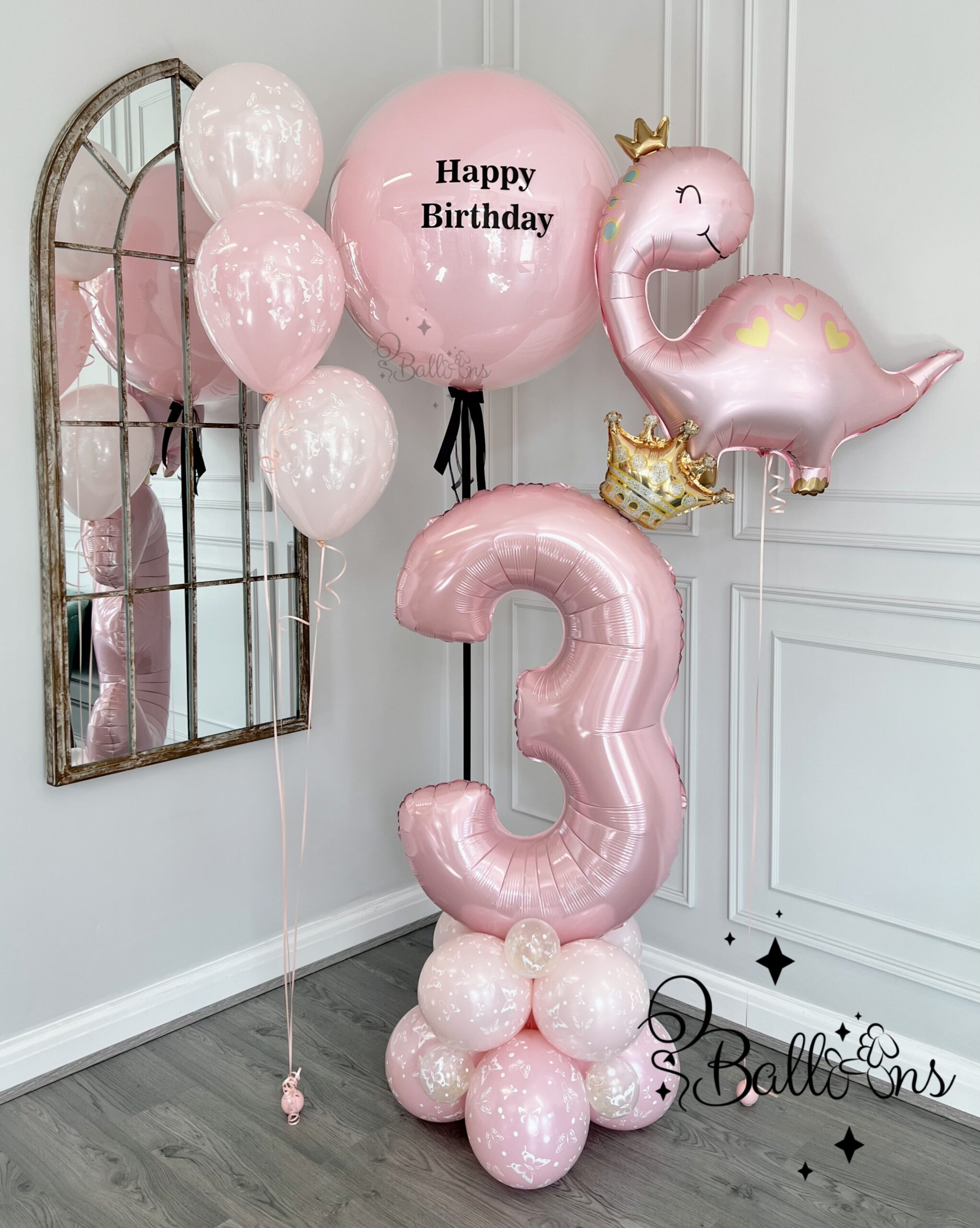 Transform your celebration into a magical and whimsical experience with our Dinosaur Princess Birthday Balloon Set! This adorable combination of a dinosaur balloon with a crown, a personalized giant balloon, and a stunning number display will bring joy to your little one’s special day. Perfect for creating a memorable party atmosphere that guests of all ages will adore!