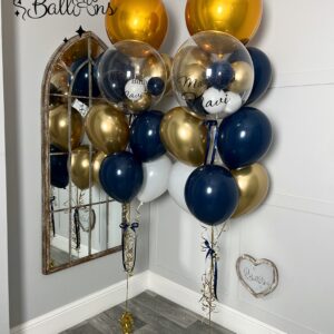 Celebrate your 21st birthday in style with our dazzling gold-themed balloon set! This elegant arrangement features large gold number “21” balloons paired with a bouquet of matching gold and confetti-filled balloons. Perfect for marking this special milestone, this set brings a touch of glamour and sophistication to any celebration.