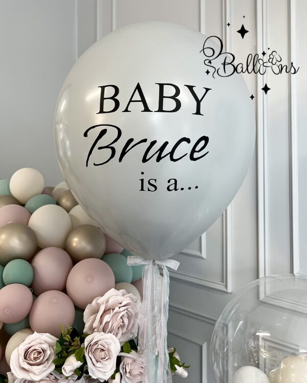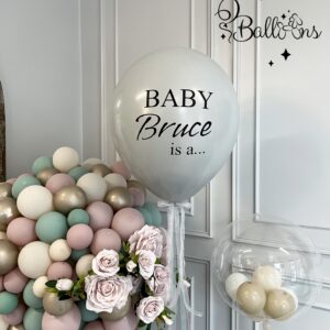 - 1 Large 18 inch White Latex Balloon: Featuring “Baby [Name] is a…” text for a custom and elegant touch.