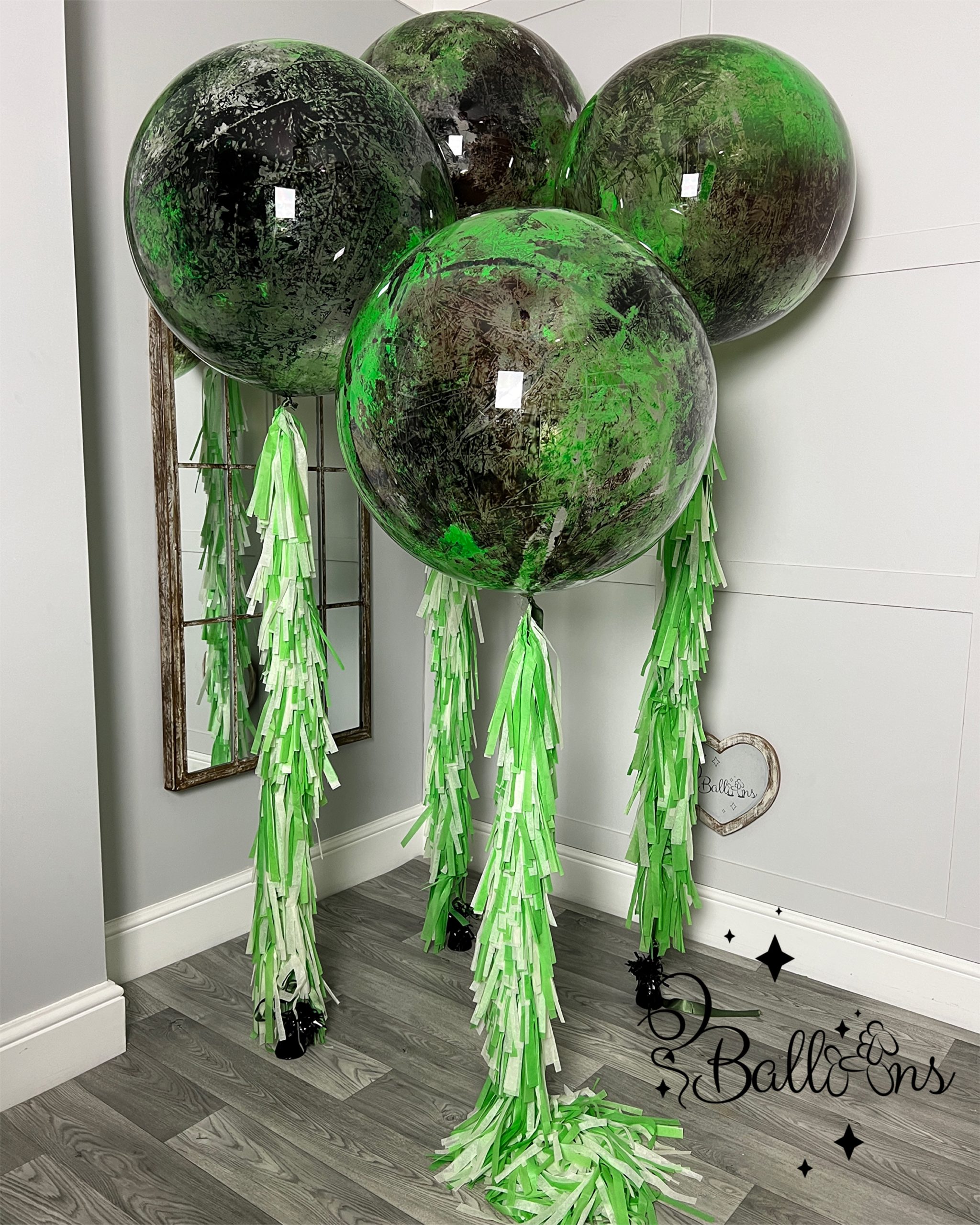 Bring a bold and edgy vibe to your event with our Camouflage Large Balloon With Tail, a striking and unique addition to any celebration.