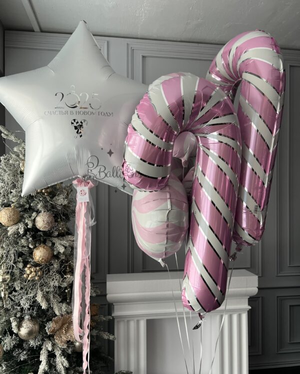 Add a festive touch to your celebrations with our Candy Cane & Star Balloon Bundle! This set features a glamorous silver star balloon personalized with “2025,” accompanied by pink and white candy cane-shaped balloons and a swirl lollipop balloon. Perfect for New Year’s Eve, Christmas parties, or winter-themed birthdays, this arrangement exudes holiday cheer and elegance.