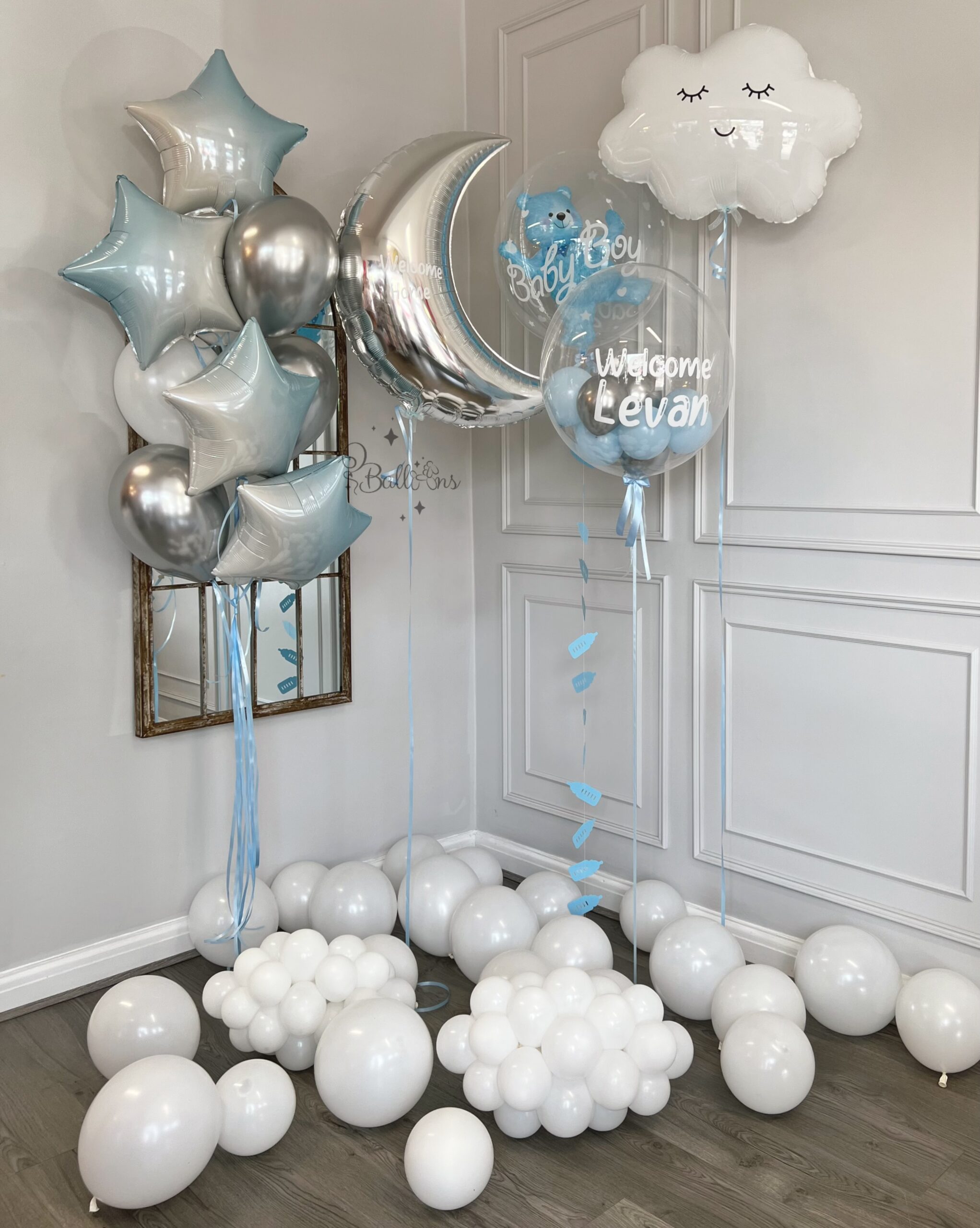 Welcome your little bundle of joy with our Dreamy Baby Boy Balloon Bundle! This adorable set features soft colors, elegant designs, and playful elements to create the perfect ambiance for baby showers, birthdays, or homecoming celebrations.