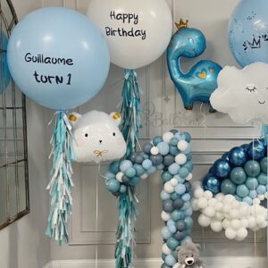 - 1 Large “1” White Balloon to celebrate the milestone.