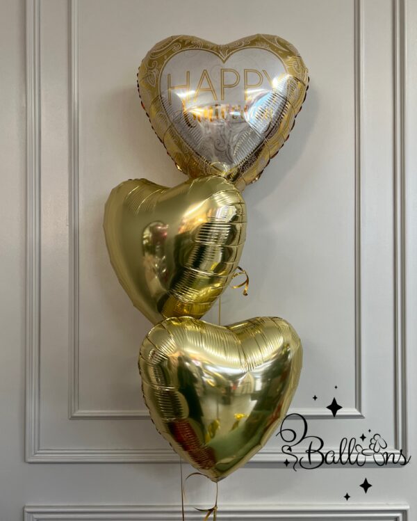 Celebrate your special moments in style with our Elegant Gold Heart Balloon Bundle. Perfect for anniversaries, birthdays, or any romantic celebration, this set exudes sophistication and charm. The metallic gold hearts combined with the “Happy Anniversary” message create a stunning display that will impress your loved ones and guests alike. Ideal for creating an elegant atmosphere, this bundle adds a touch of glamour to any setting.