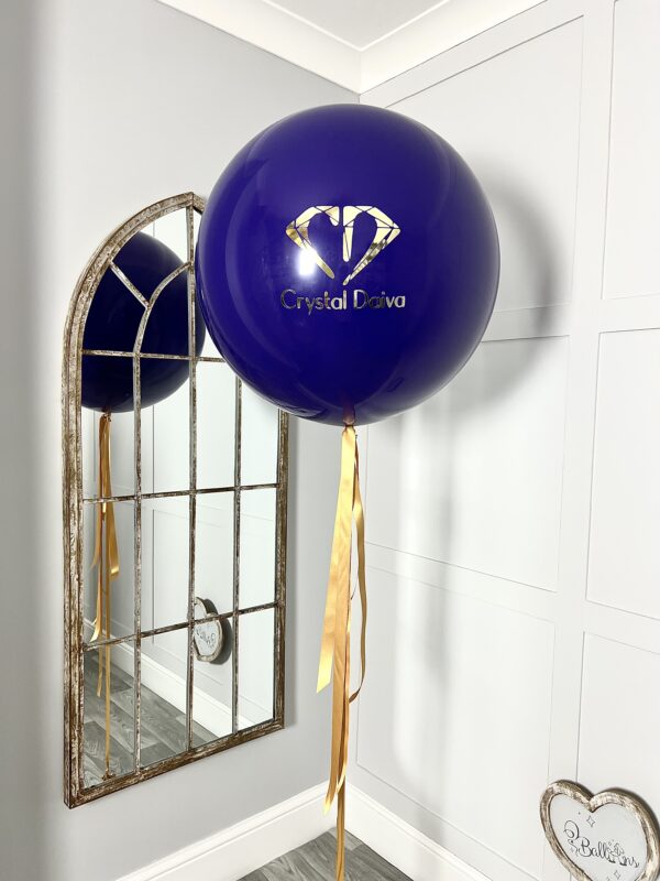 Make a bold statement with our Elegant Custom Logo Balloon in Deep Purple. This luxurious balloon features a personalized logo in metallic gold, perfect for corporate events, brand launches, or special occasions. The deep purple color exudes elegance and sophistication, while the gold ribbon adds a touch of luxury. Whether it’s for business branding or a high-end celebration, this balloon is designed to impress and elevate any setting. Delivered fully inflated, it’s ready to showcase your brand or message in style.