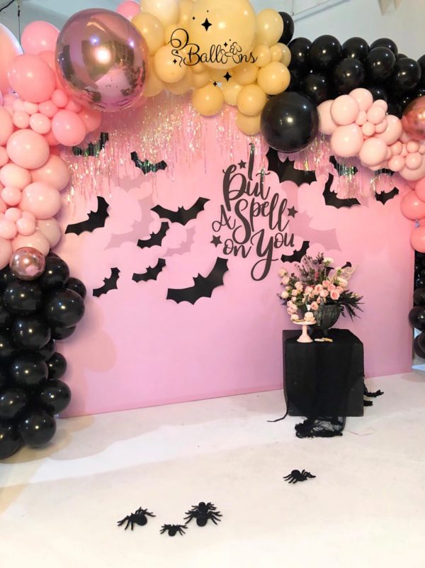 Balloon garland around the backdrop