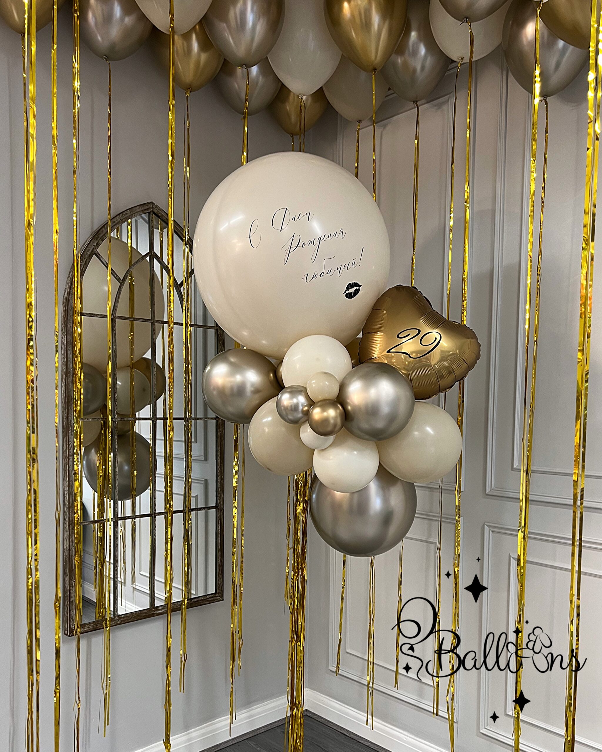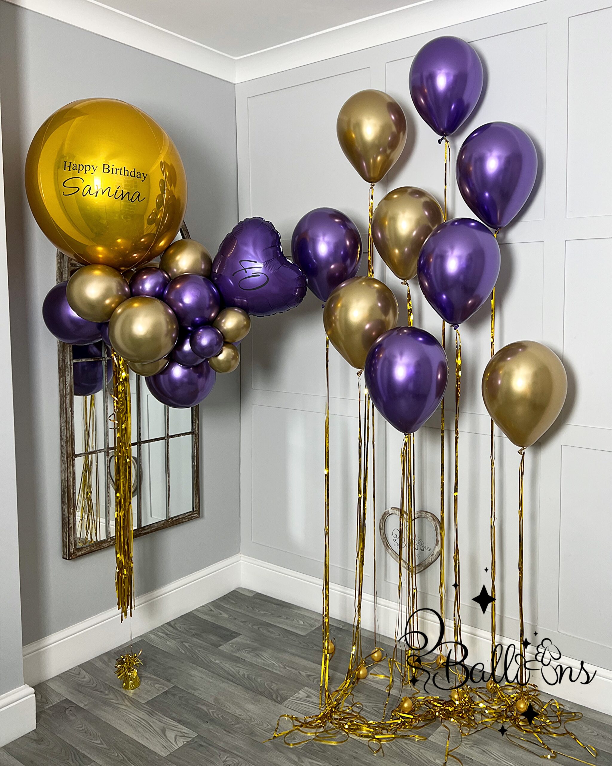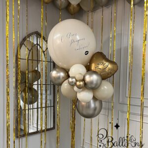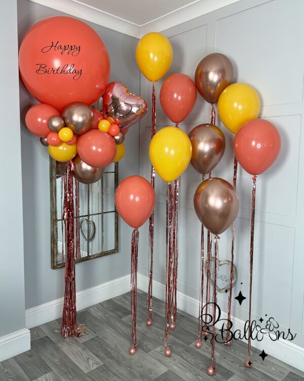 Large personalised balloon arrangement and 9 latex balloons with tassels