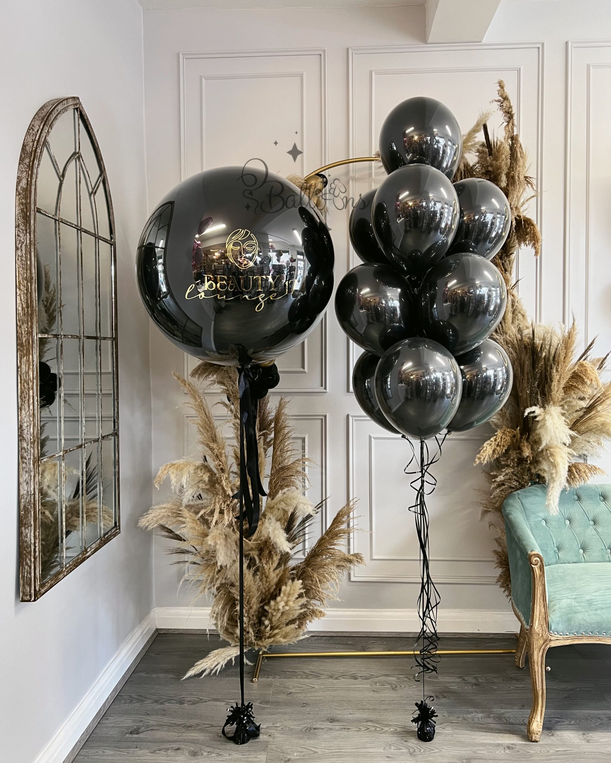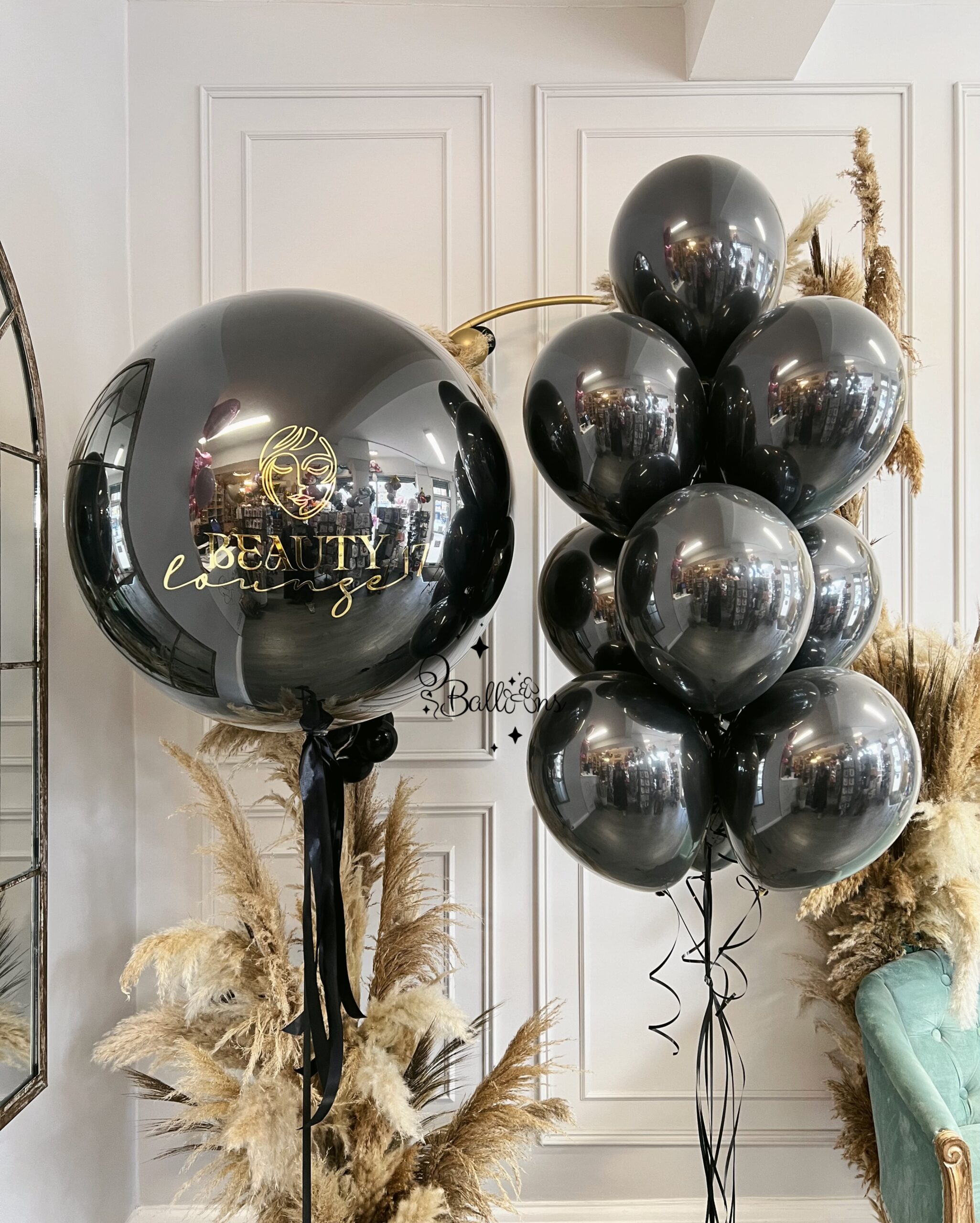 Elevate your event with our Luxury Black & Gold Balloon Set, featuring a stunning mix of elegant, high-gloss black balloons and a personalised giant balloon with your custom branding or message. Ideal for grand openings, VIP events, birthdays, or luxury celebrations, this premium balloon arrangement adds a sophisticated touch to any setting.