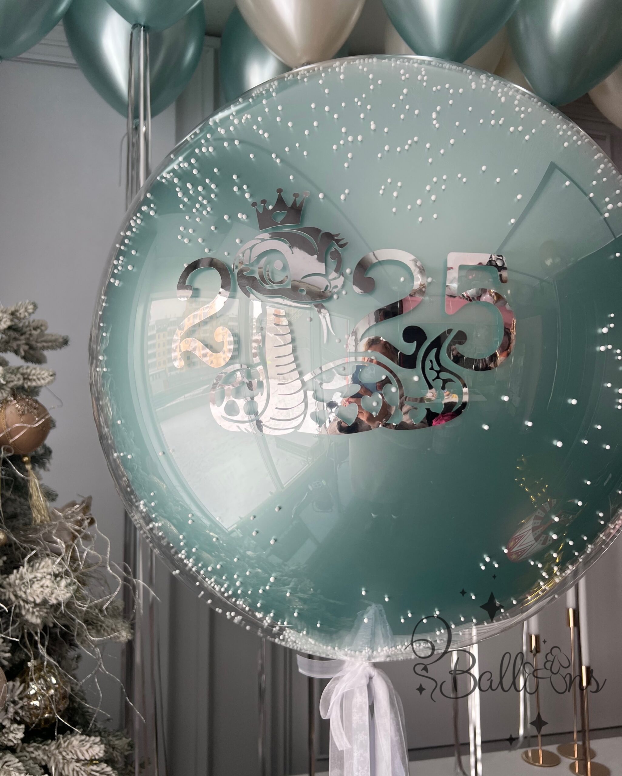 Elevate your celebrations with our Metallic Elegance Balloon Display. This stunning centerpiece features a 3ft transparent personalized balloon filled with metallic confetti for a luxurious effect, adorned with a beautiful ribbon tail for added sophistication. The set is complemented by an array of metallic and pearl-finished ceiling balloons, creating a magical floating effect that enhances any space. Ideal for New Year’s Eve, weddings, corporate events, or elegant private parties.
