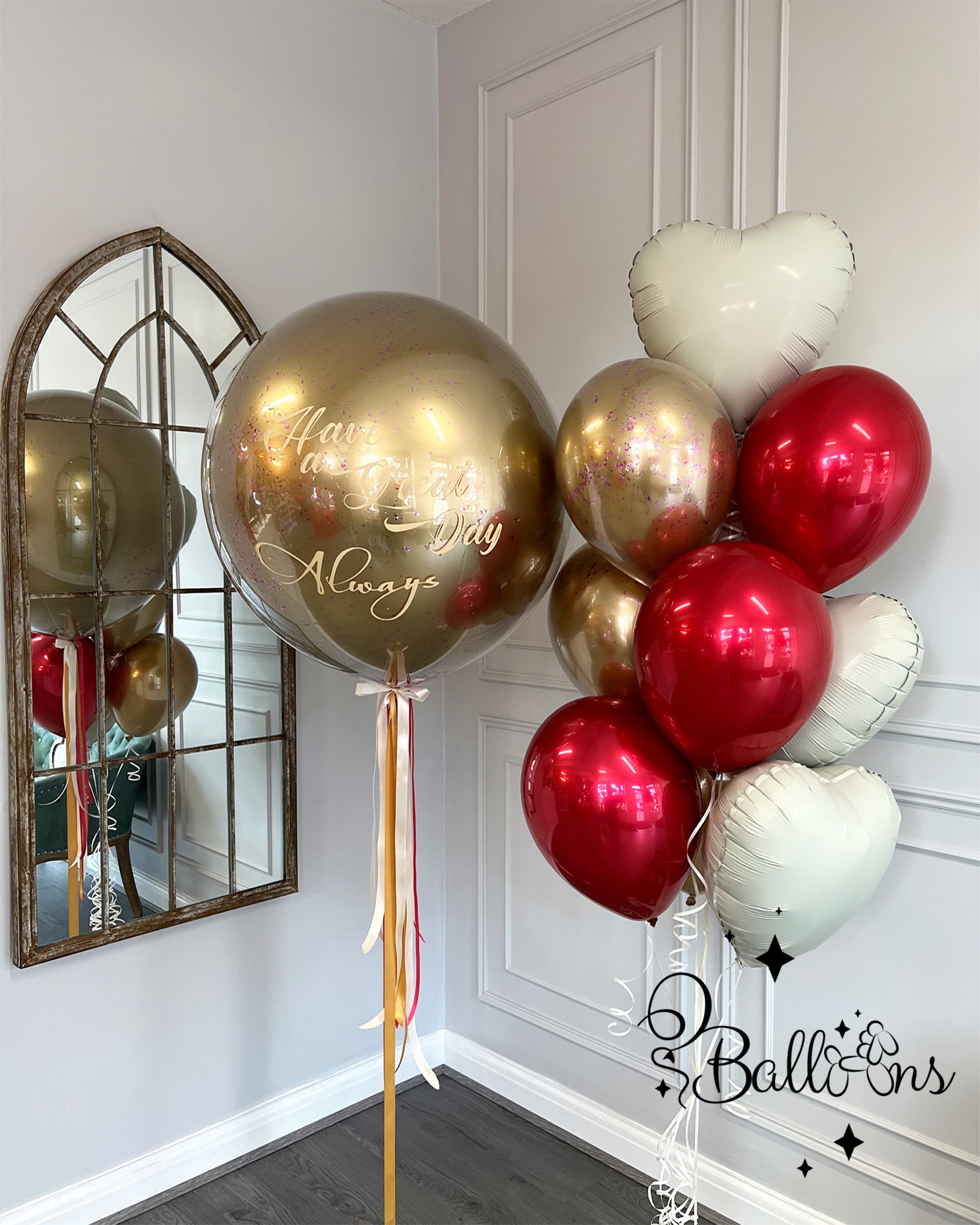 One bouquet with 3 confetti balloons, 4 foil heart balloons, 3 latex balloons