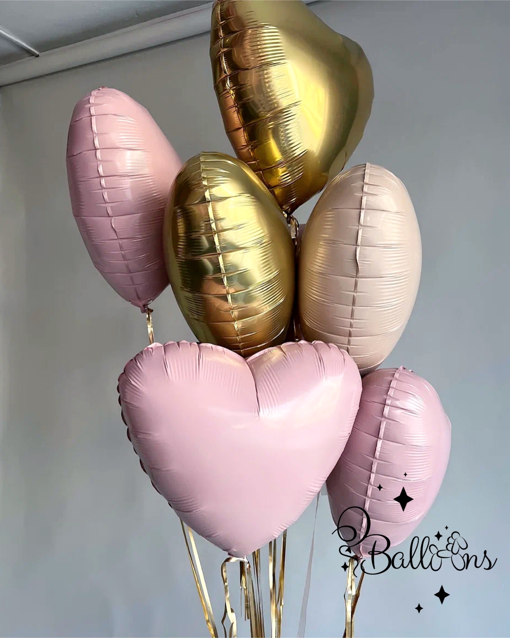 - 7 Metallic Foil Balloons: A luxurious mix of heart-shaped blush pink and gold balloons for a sophisticated look.