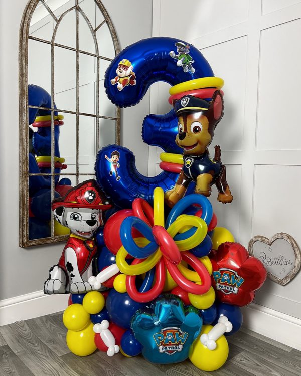 - Large number “3” balloon with PAW Patrol characters